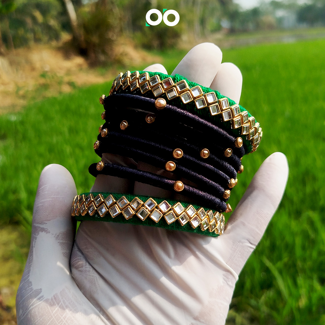 গর্জিয়াস প্রিমিয়াম গ্রিন এন্ড ব্ল্যাক সিল্ক থ্রেড চুড়ি