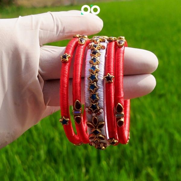 কুন্দন গর্জিয়াস রেড এন্ড হোয়াইট সিল্ক থ্রেড চুড়ি