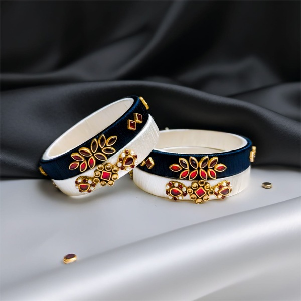 কুন্দন নেভি ব্লু এন্ড হোয়াইট সিল্ক থ্রেড 4 পিচ্