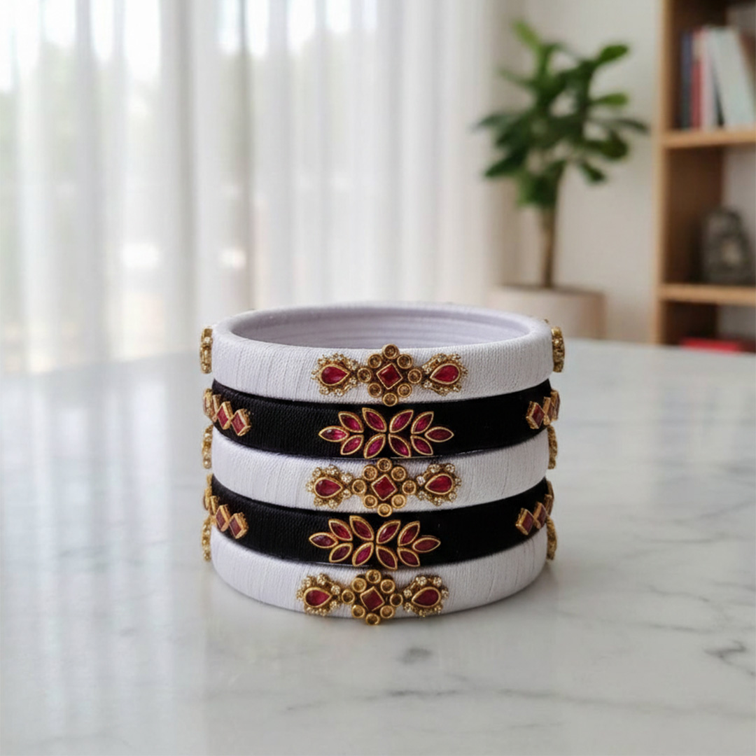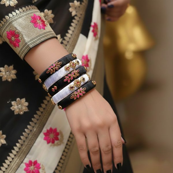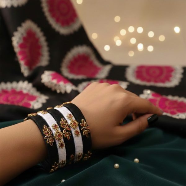প্রিমিয়াম কোয়ালিটির সিল্ক থ্রেড (রেশমি সুতো) দিয়ে তৈরি এই চুড়ি সেটটি আপনার সাজে নিয়ে আসবে আভিজাত্যের ছোঁয়া।